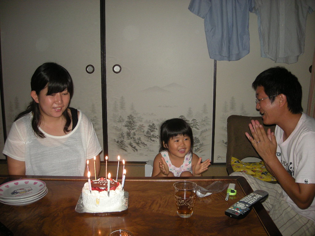よく見えません、テーブルの右が自分<明ちゃん>,左がママ、ママ後ろがパパ、その後ろが