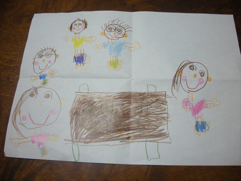 明ちゃんがママのために書いた家族全員を書いた絵だそうです(今日のこの誕生会の様子