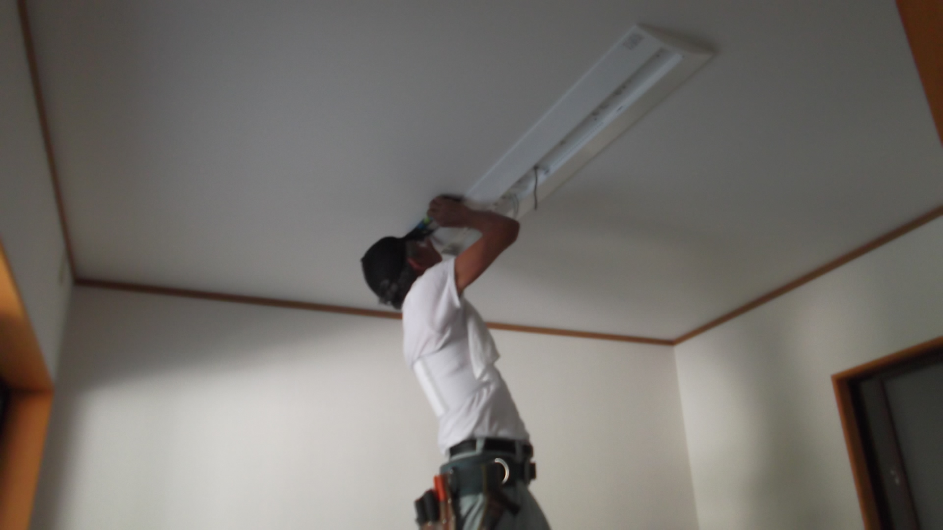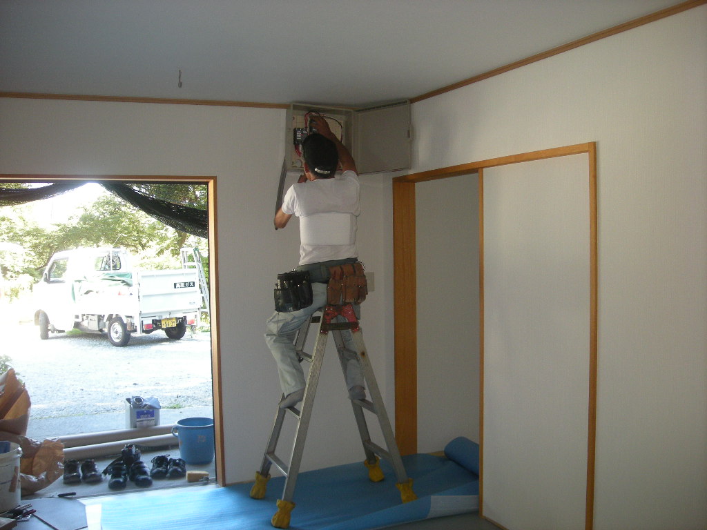 *内装工事が終わるとすぐに電気屋さんが工事に入ります。