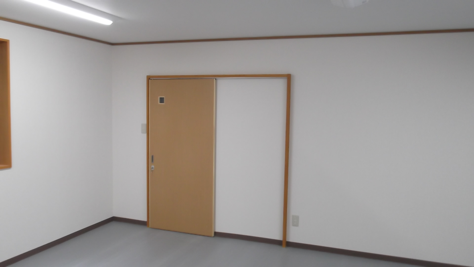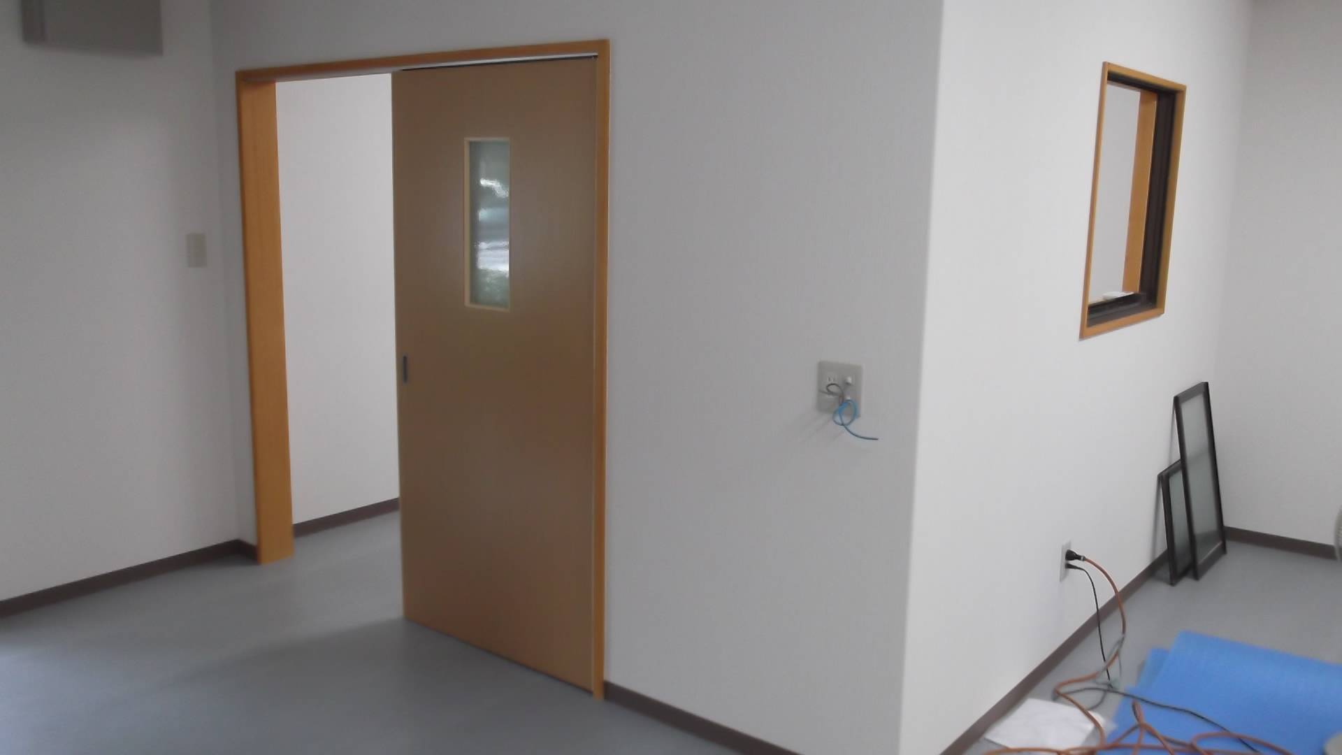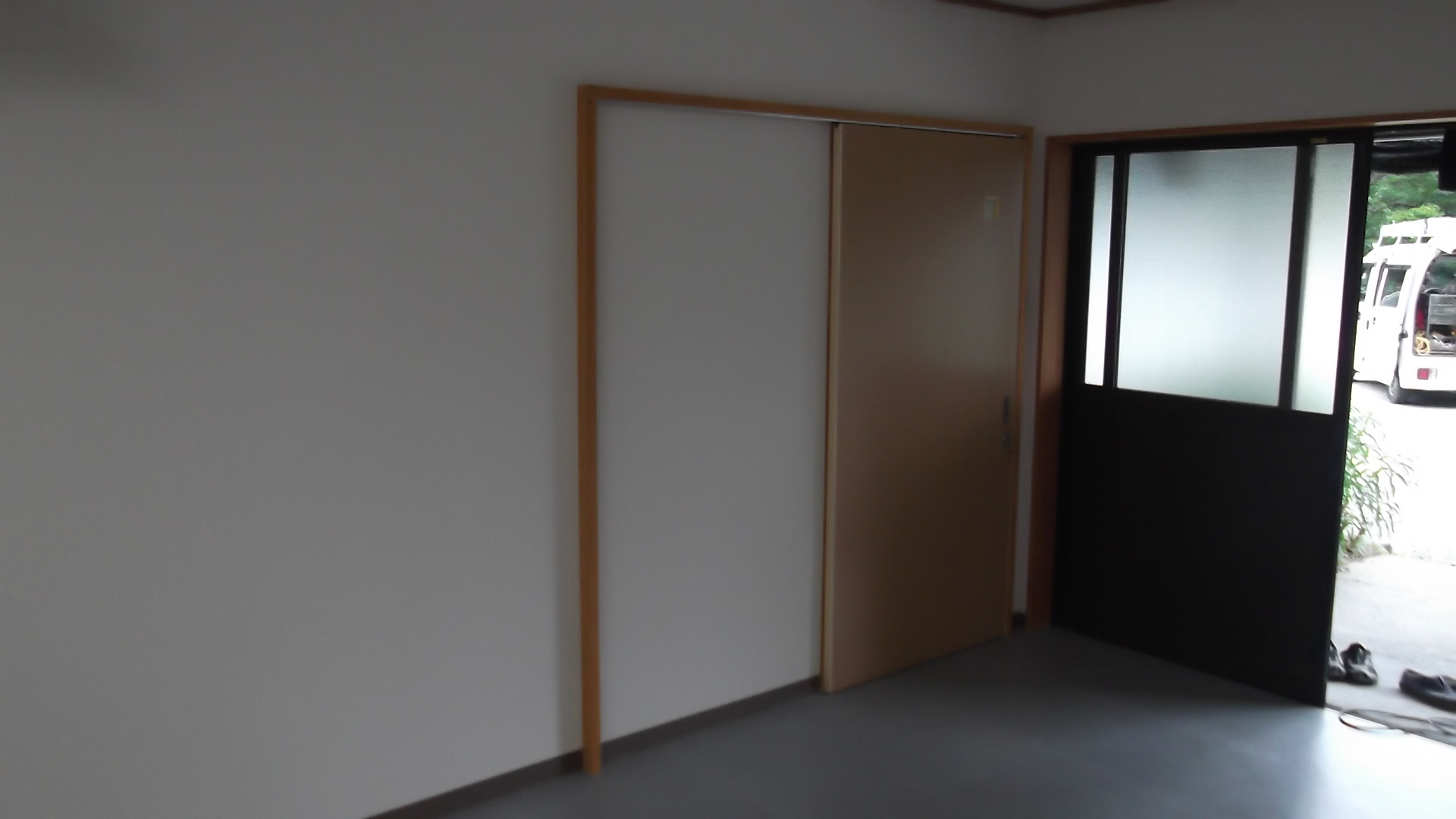 奥の隣の事務所の更衣室との出入り口の建具収めの完了です!!