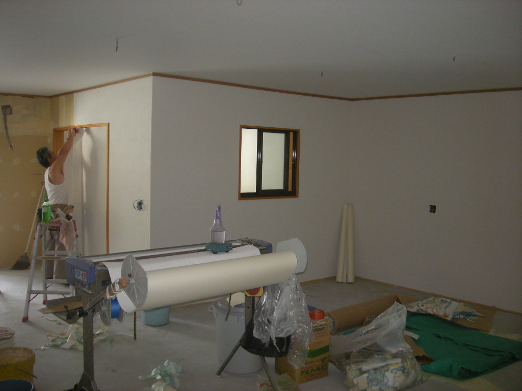 なにしろ床の面積が50m2がある広い部屋なのでクロス屋さんによる内装工事が6日間かかり