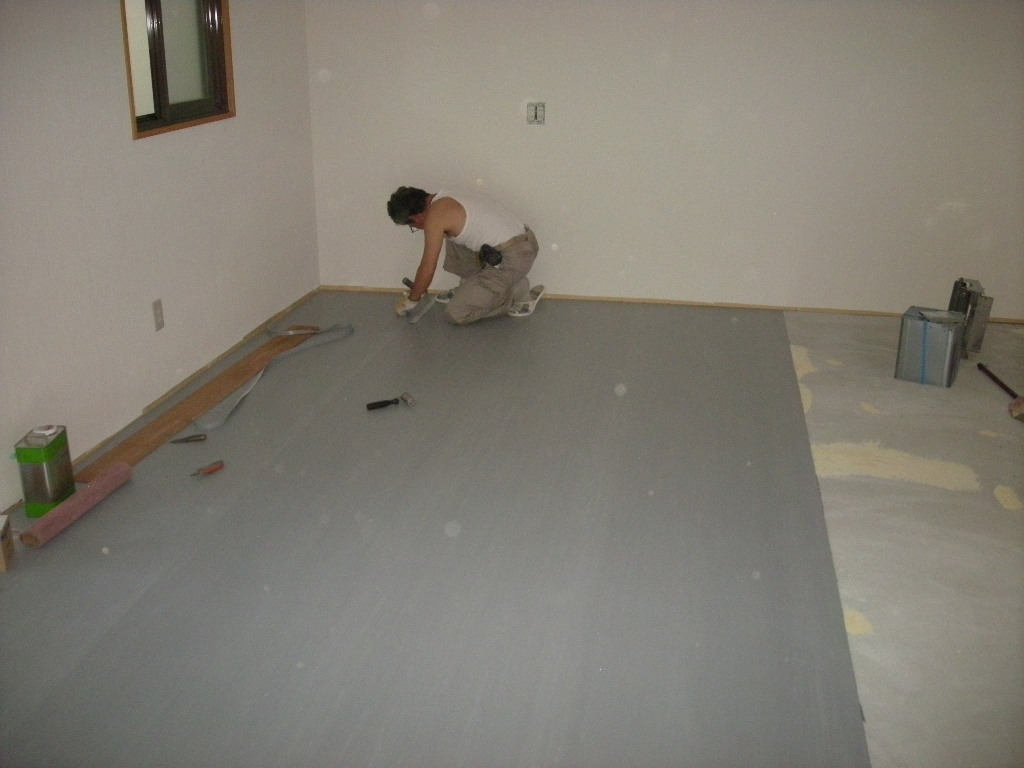 最後に床に重歩行用シート(エスリューム)を施工して行きます!!