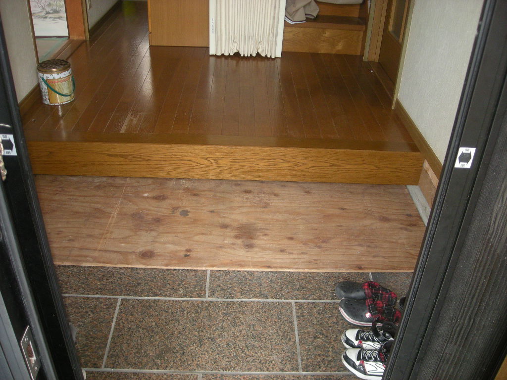 最初に玄関框と廊下の一部を解体します!!