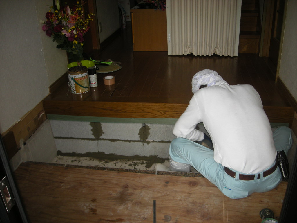 玄関框の下にブロックを施工します!!