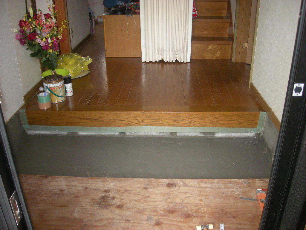 拡張した部分の土間の空洞を埋戻し、タイルを張るための下地モルタルを施工しました!!