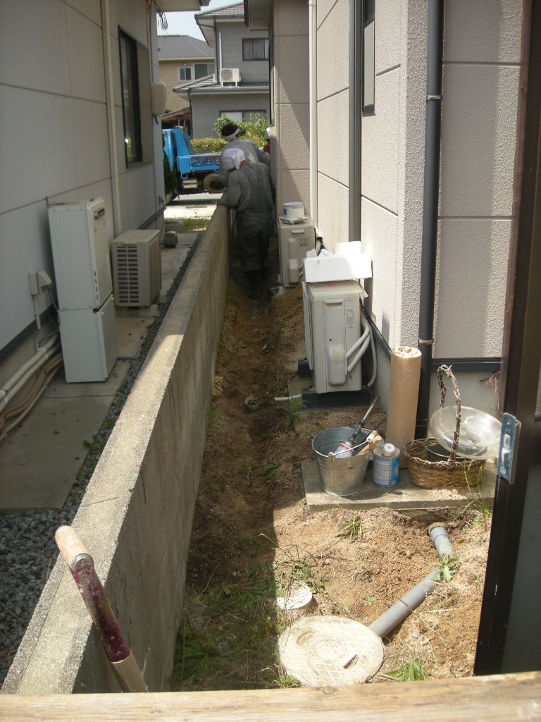 一般的な工事がされていないため、市の下水道局からの指示により全部の配管を引き直すことに