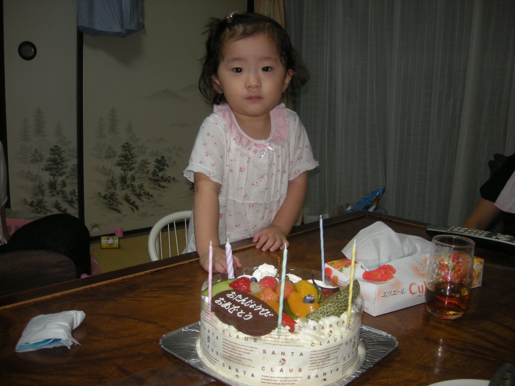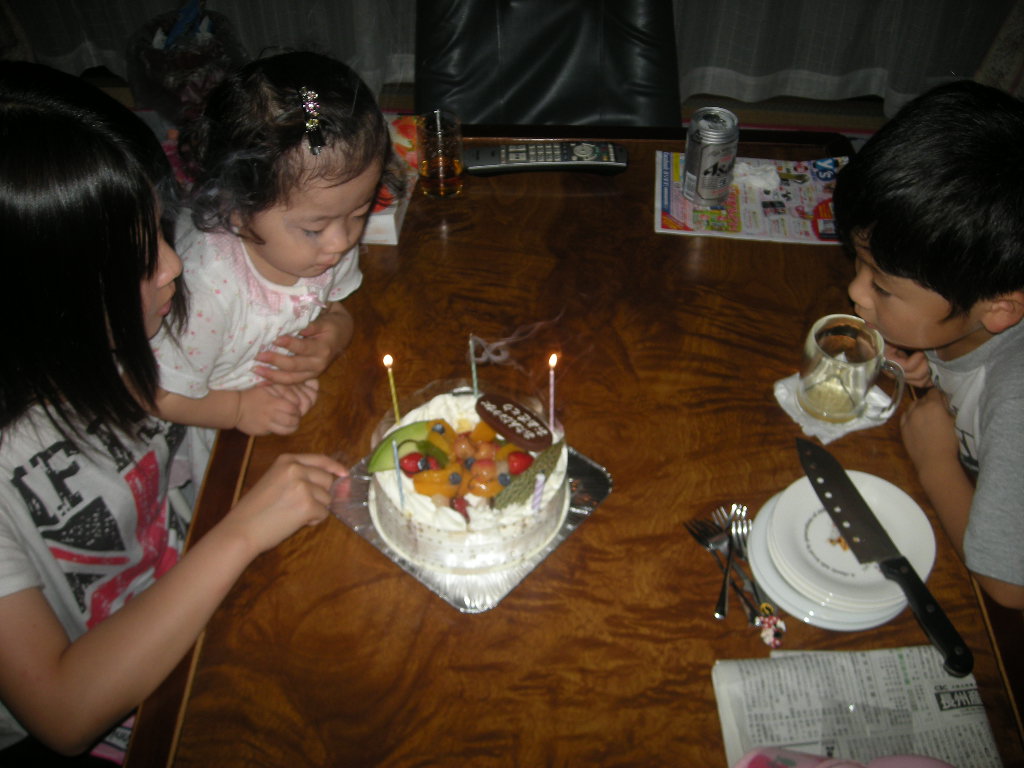 ローソクに火をつけると、待ちきれない「香ちゃん」がすぐ火を消しました!!