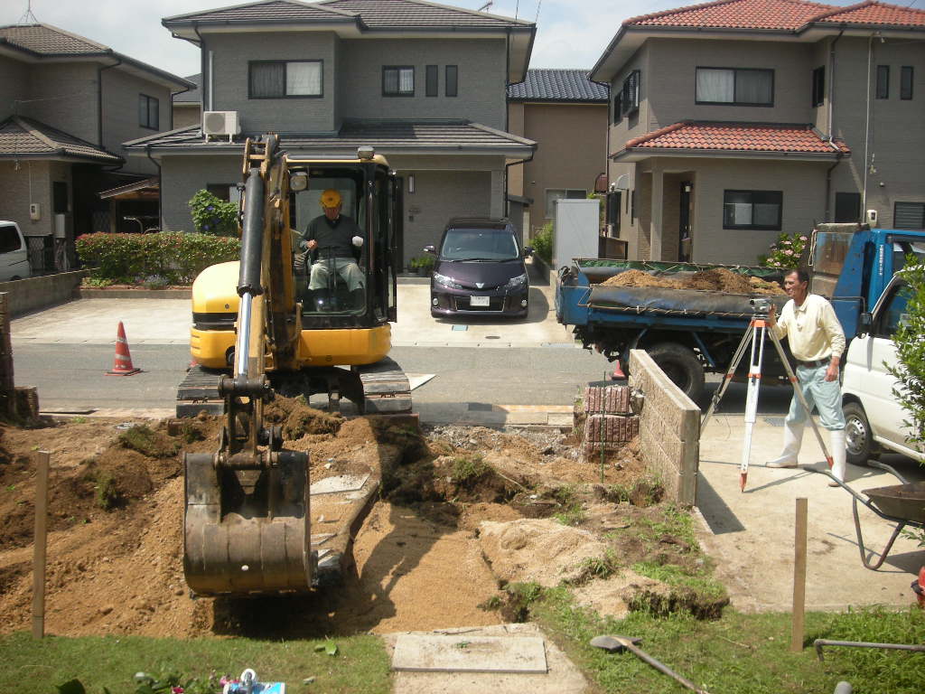 次はブロックを施工したり、コンクリートを打つための下地づくりへと進みます。