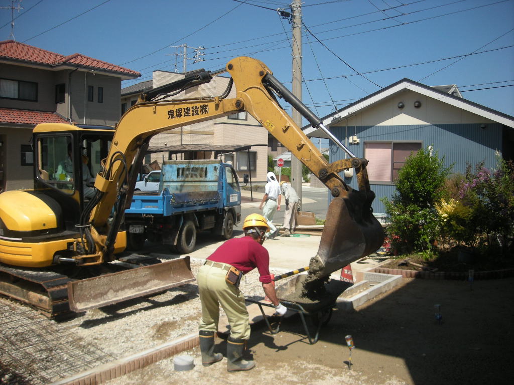整地後、メッシュ筋を敷き生コン打ちました!!