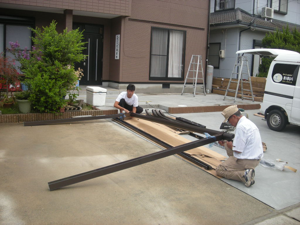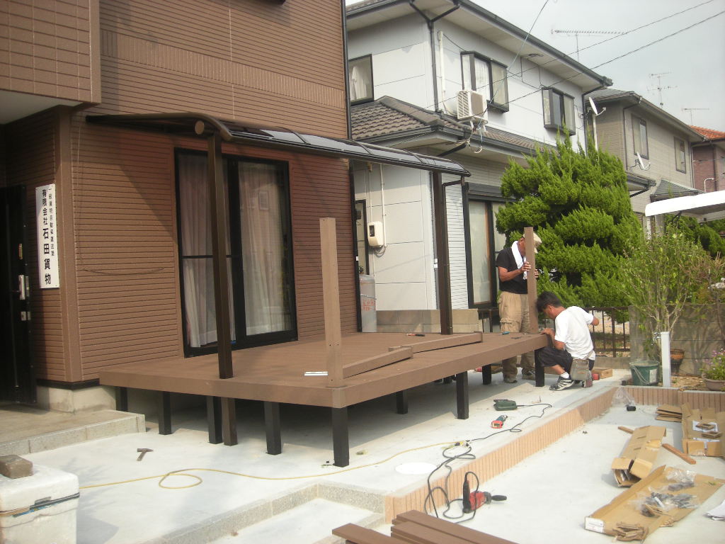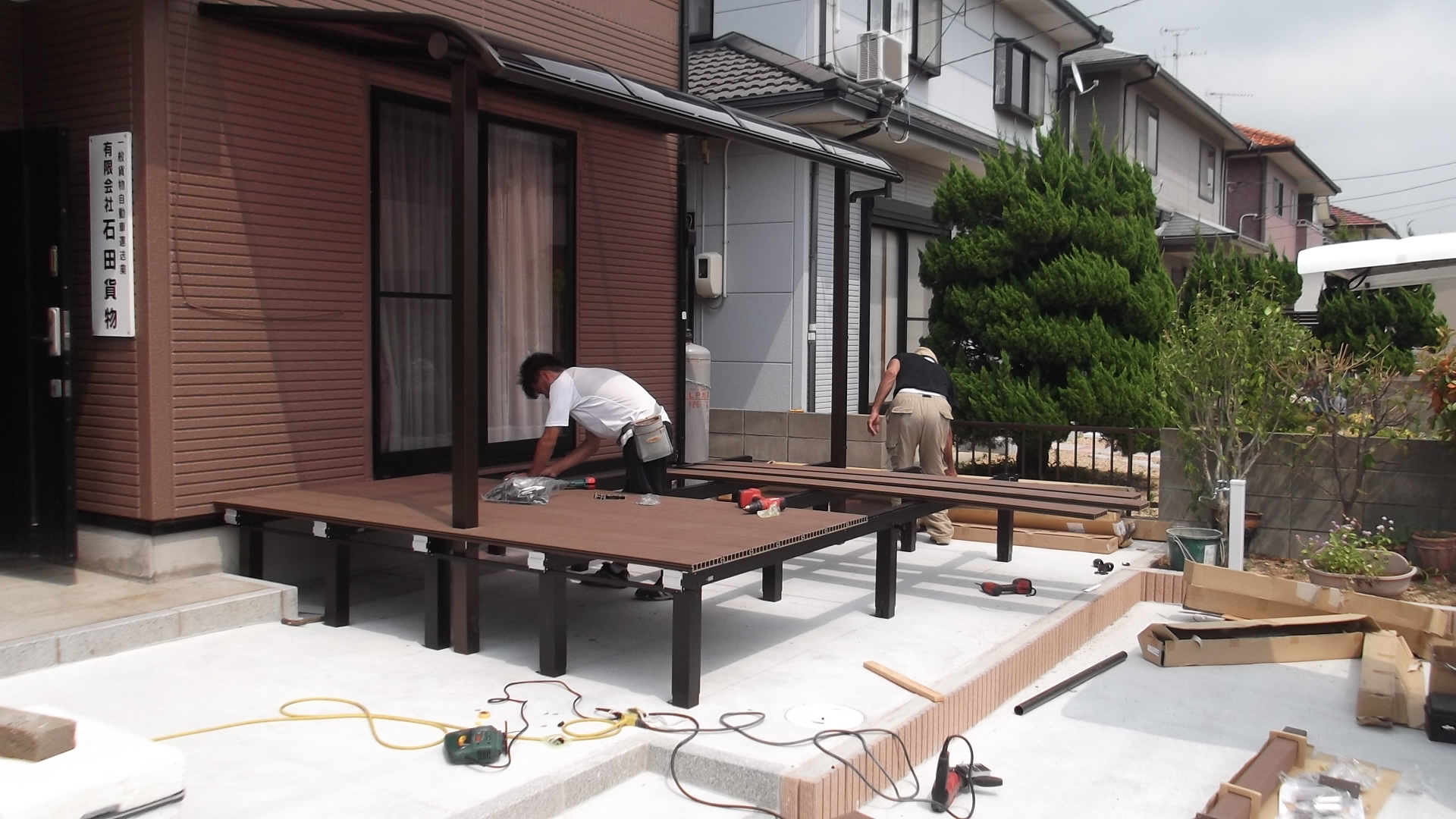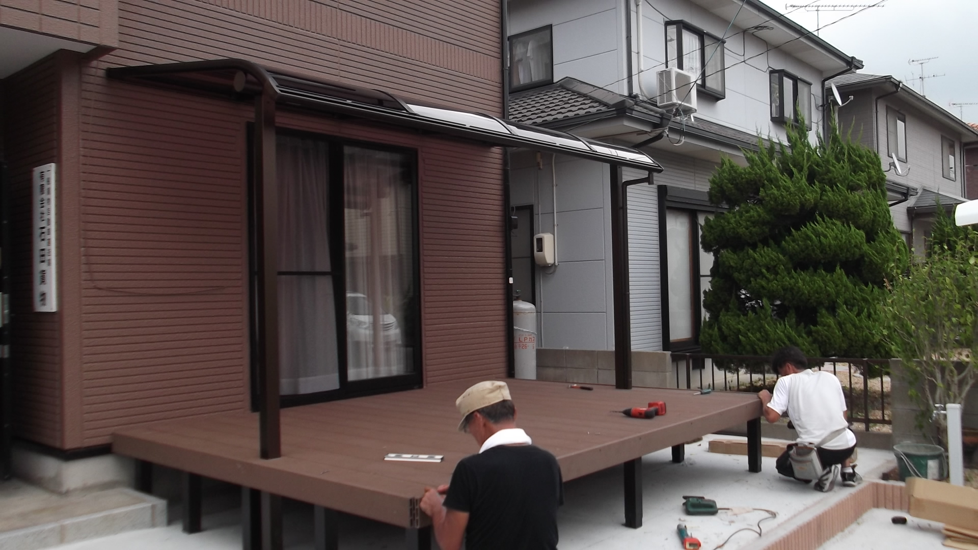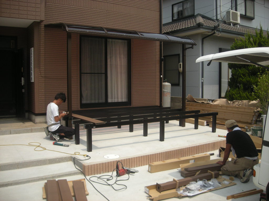 *塗装工事の終了後、次は最後の工事となるテラスとウッドデッキの組立、施工をします。