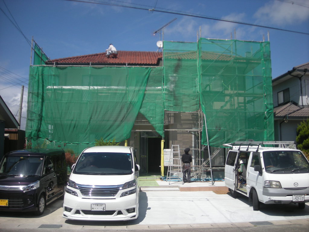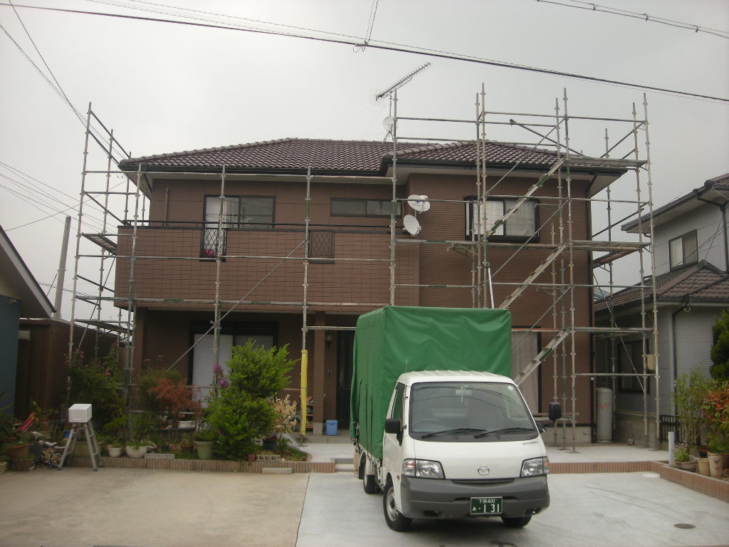 外廻りの塗装がすべて終わりました。後は足場を解けば塗装工事の完了です!!