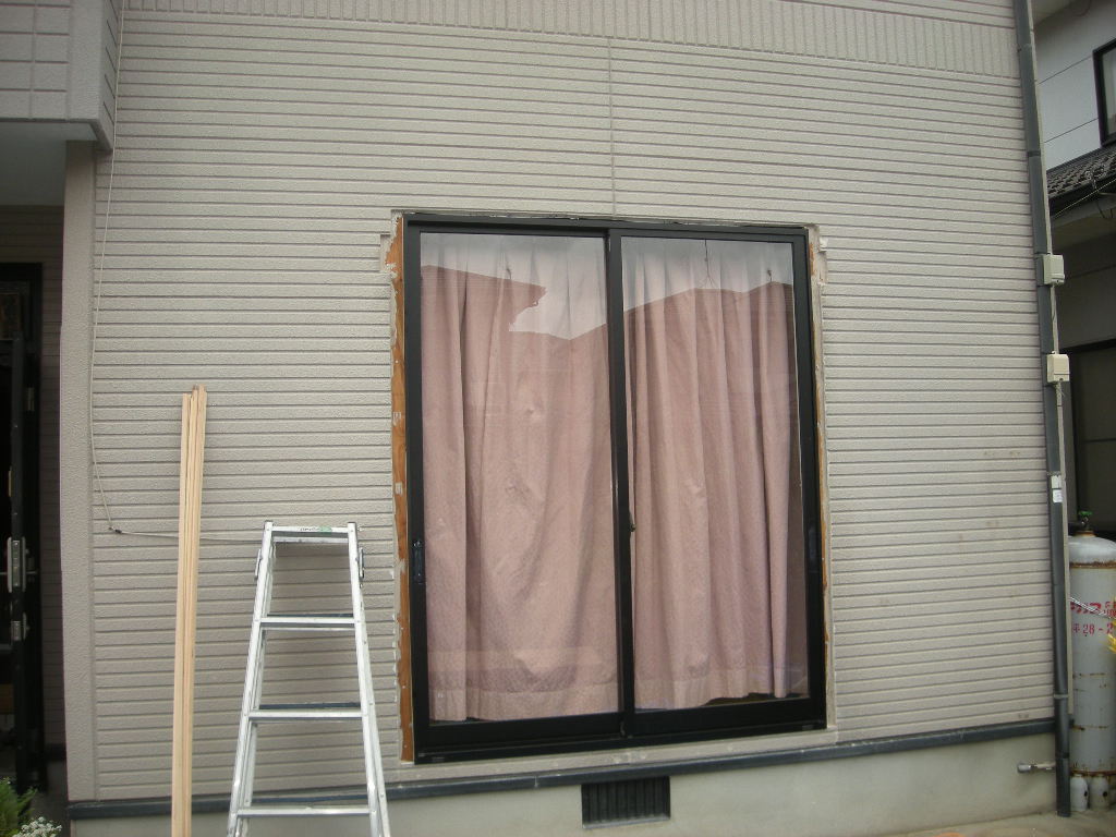 ①、サッシ交換工事。(居間の中連サッシを掃き出しサッシに交換)