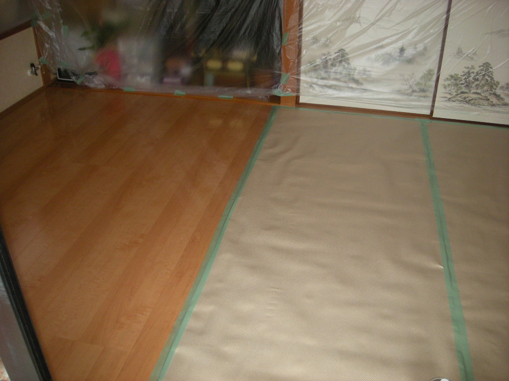 ②、和室改修工事。(畳を撤去しフローリングに張替え、押入れを改修)