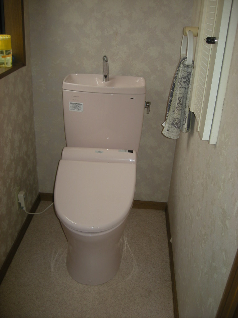 ⑤、トイレ改修工事。(既存便器、タンク、ウオシュレットの交換)