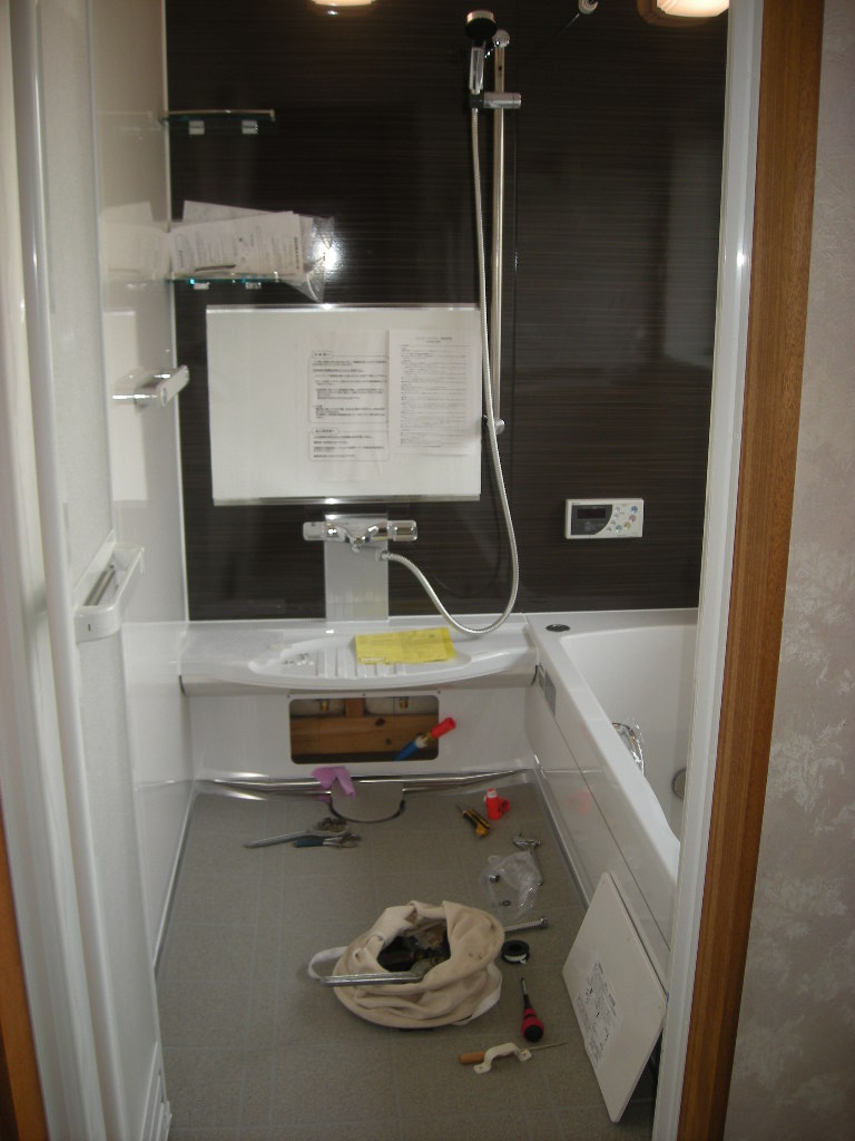 ④、浴室改修工事。(既存システムバスを解体,撤去し、新規システムバスへ)