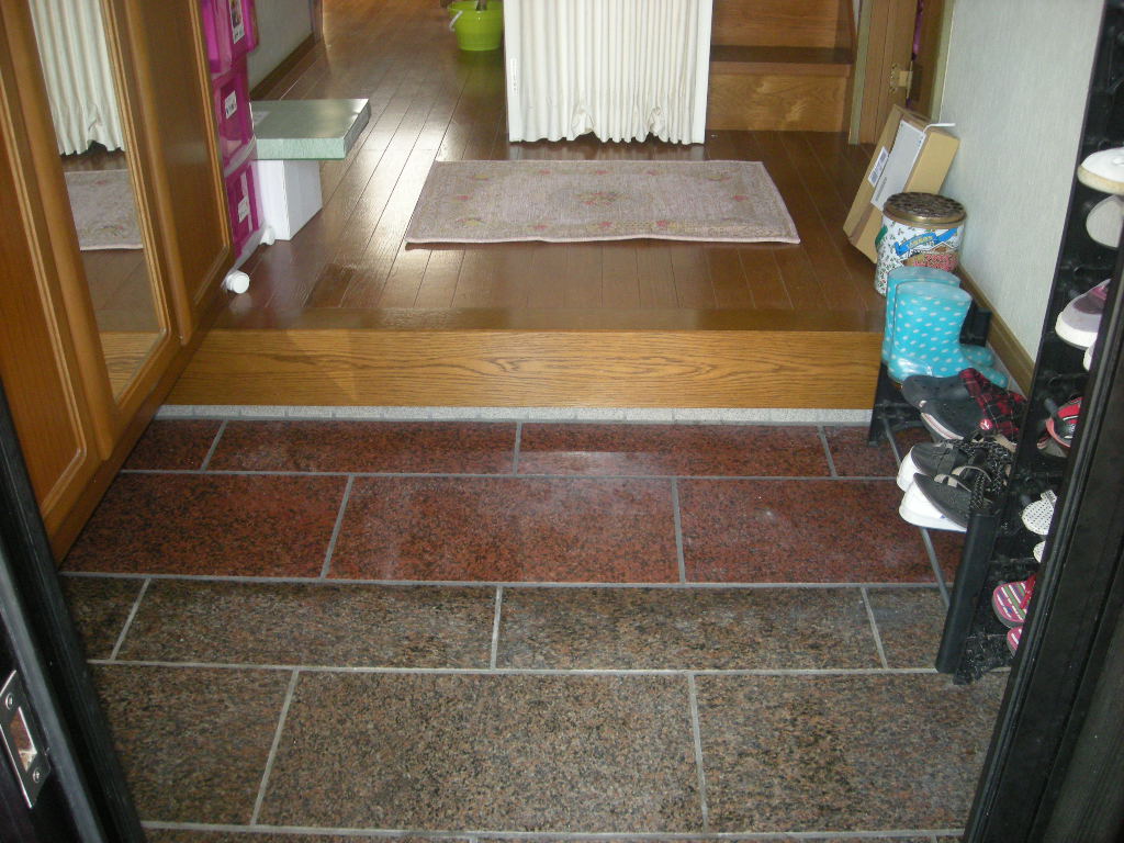 ③、玄関廻り改修工事。(既存の玄関の土間部分が狭いと言うことで、土間部分を約60㎝広くする)