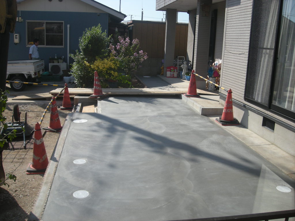⑧、駐車場拡張・整備工事。(玄関、庭廻りを解体し、新規駐車場に整備)
