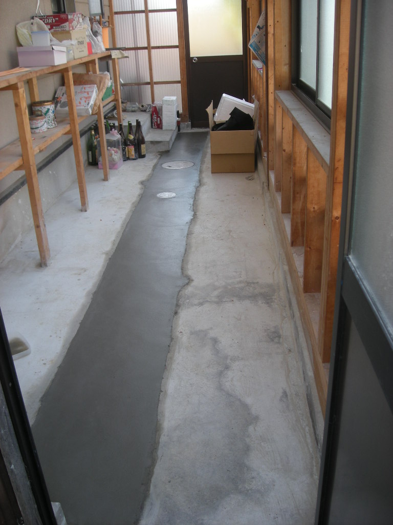 ⑦、庭整備工事。(庭廻りに草が生えない様にコンクリートを施工)