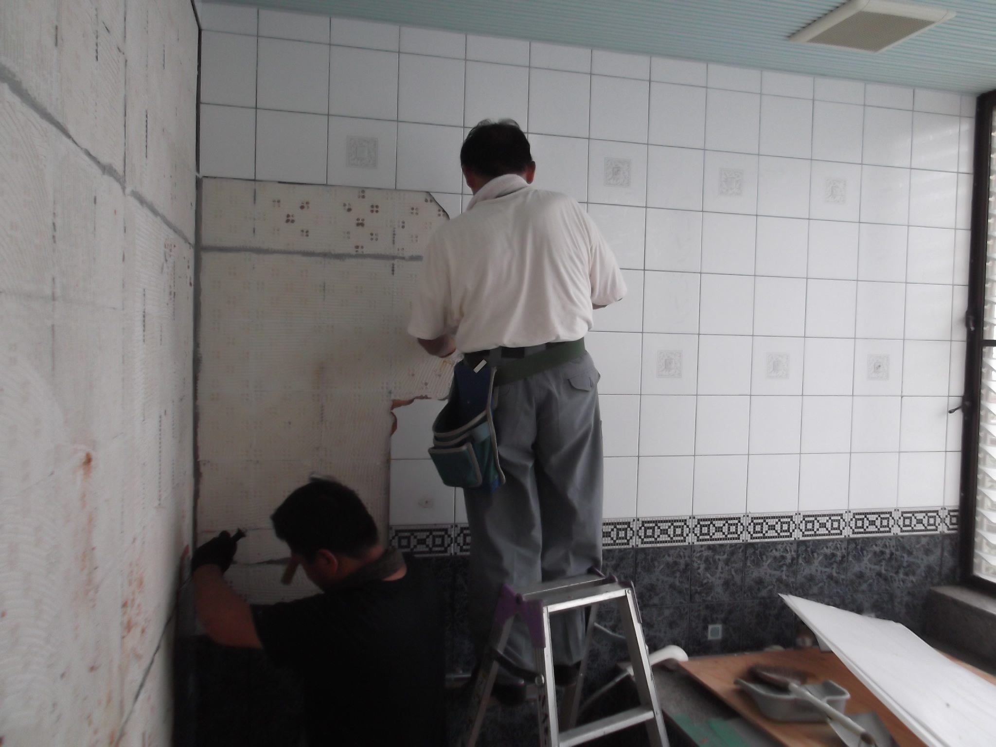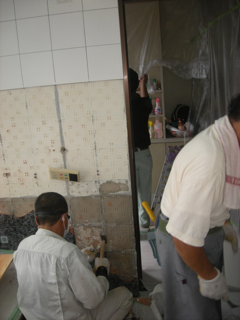 壁廻りのタイルの解体、撤去をします!!