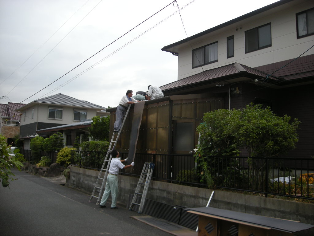 先週の金曜日(8/23)は、東観音町で倉庫(ストッククヤード)の波板の張替えを