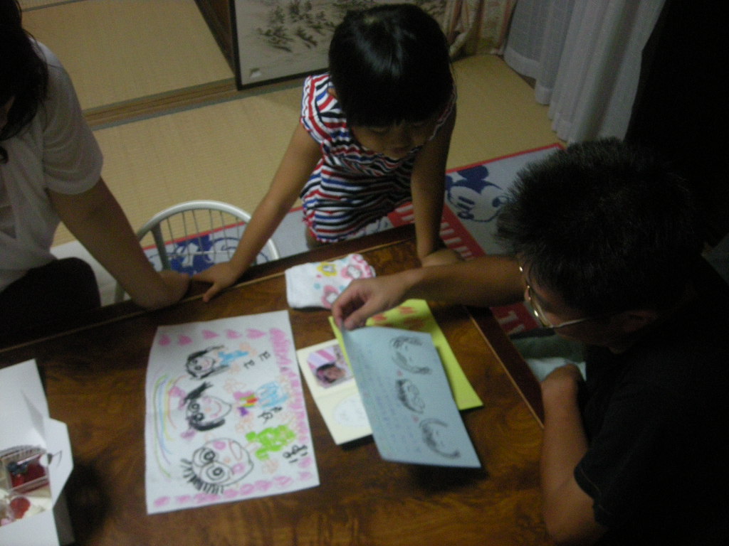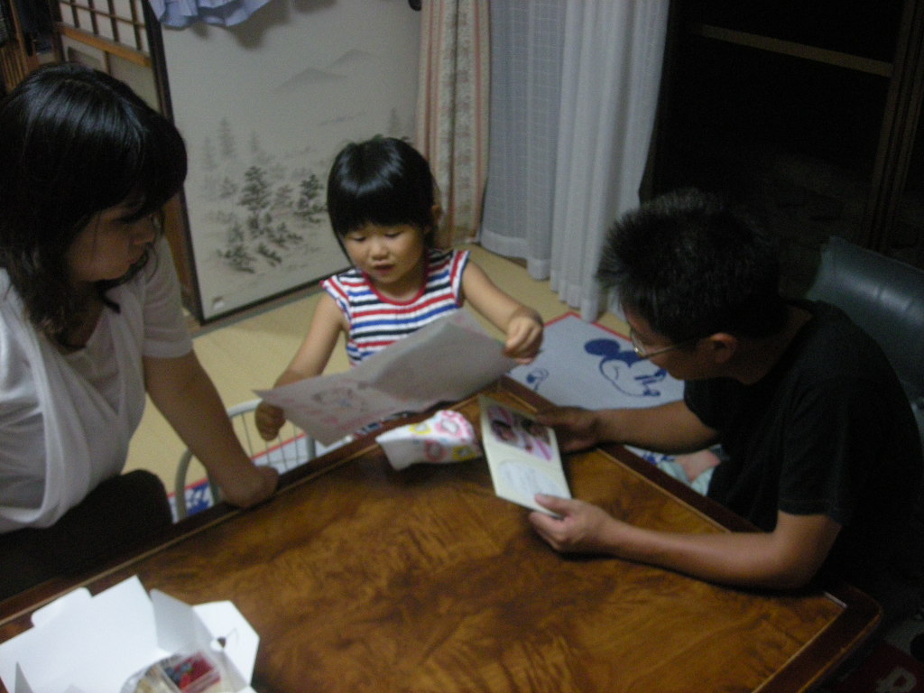 明ちゃんが書いた家族の似顔絵入りのメッセージにパパは大感激の様子!!