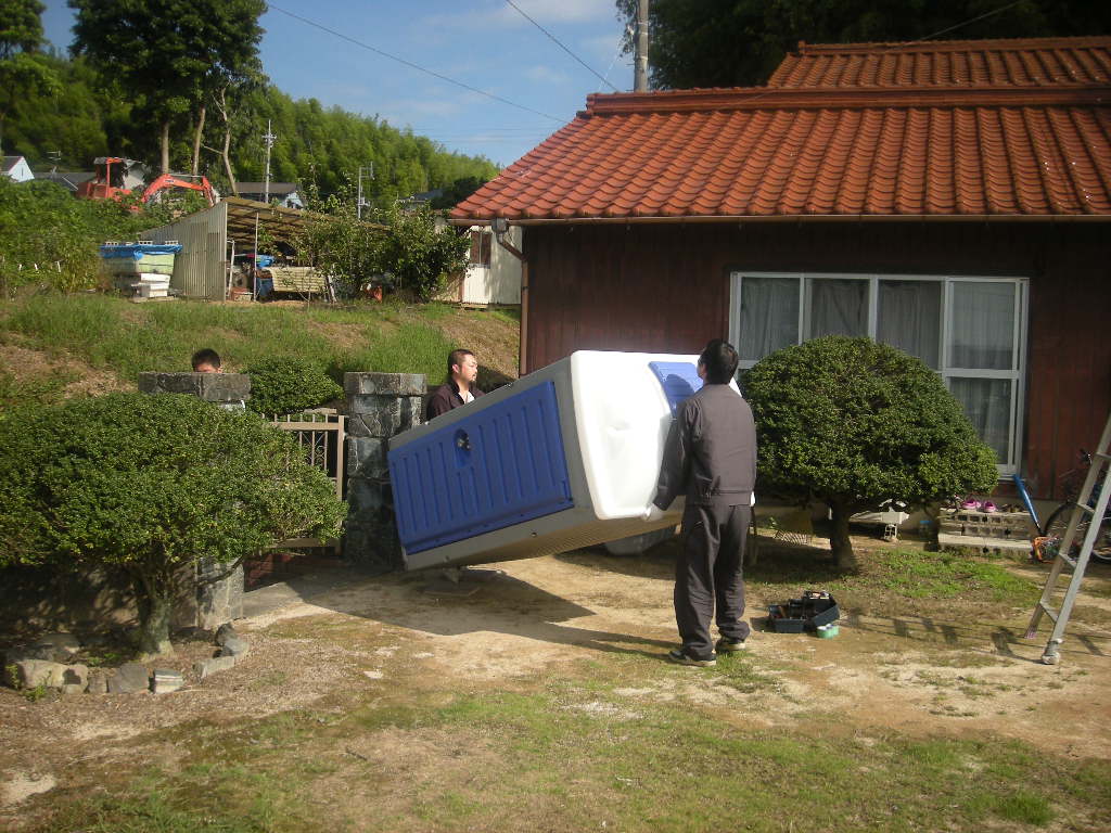 仮設トイレを運び入れます!!