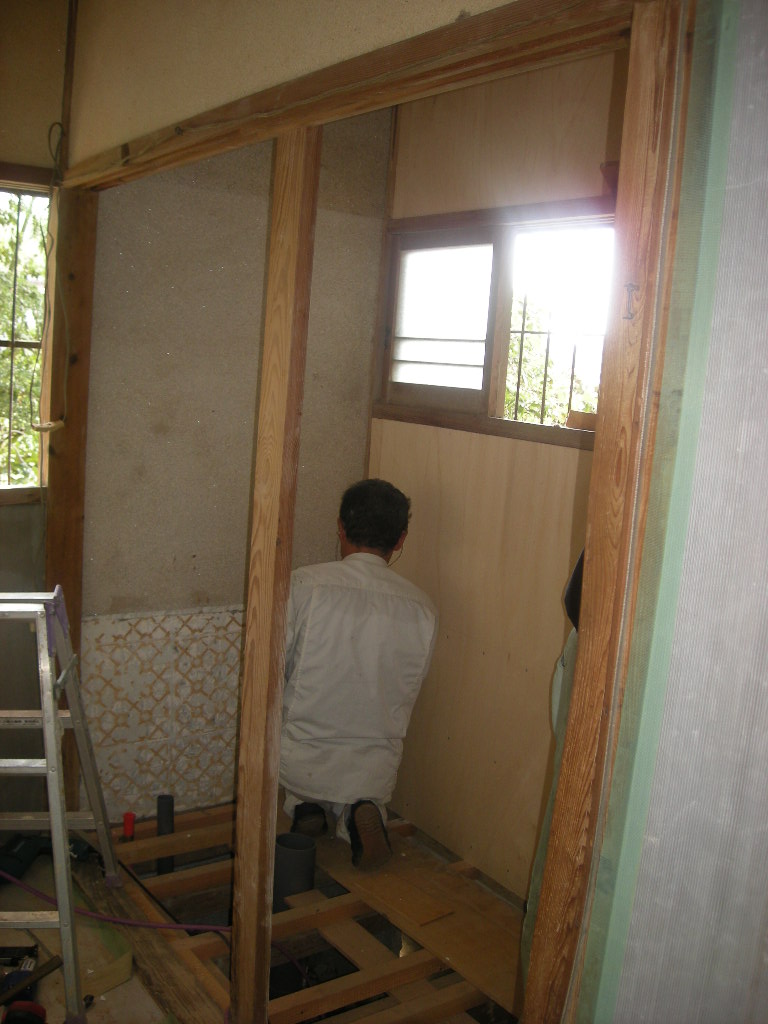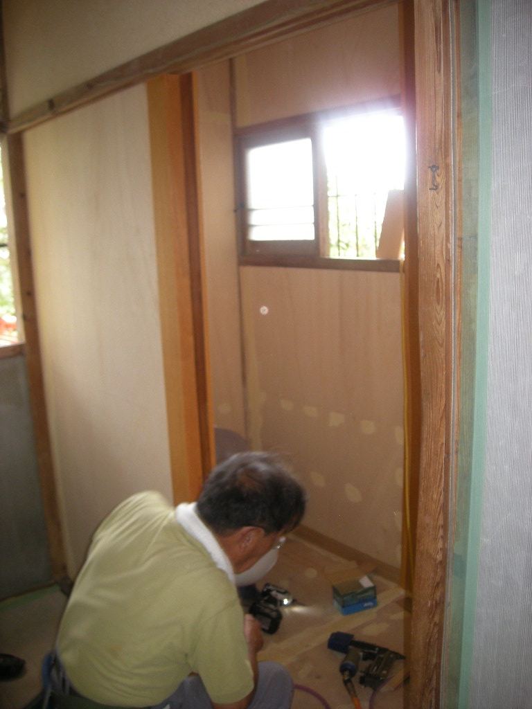 入口には新規の片引き戸を取付けるため奥半分は壁を造ります!!