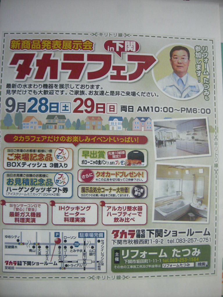 タカラ下関ショールームにおいて「タカラフェアーin下関」