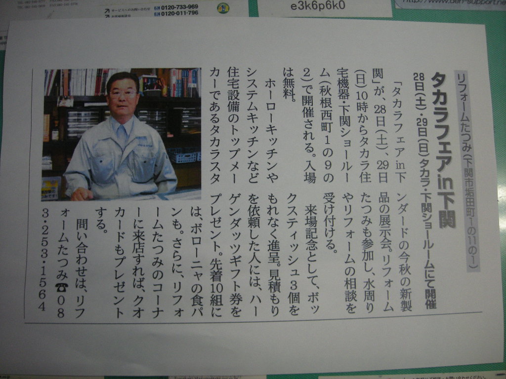 当日「週刊リフレッシュ」の広告を切り取って、当社