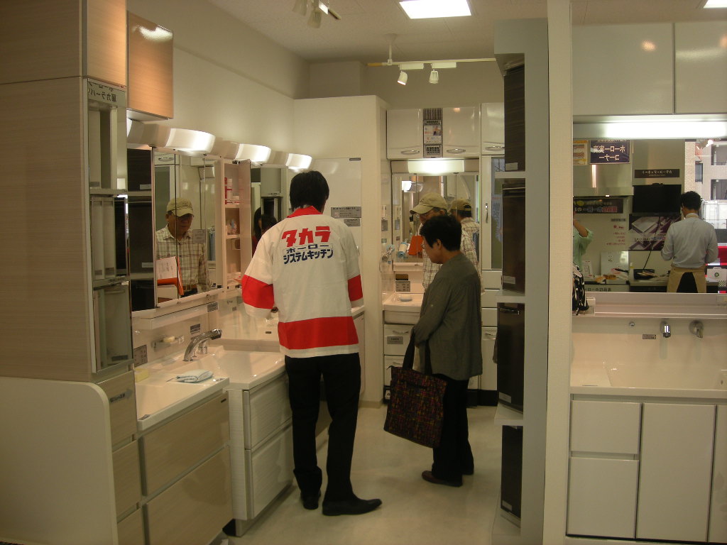 来年3月にリフォームを予定している当社のお客さんもキッチンを色々見ています!!