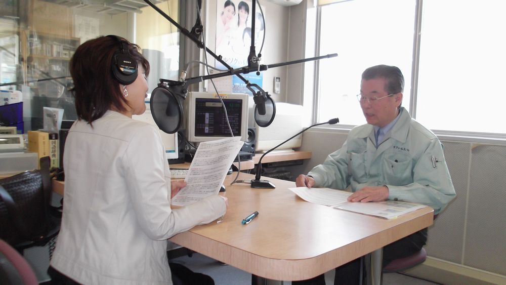 その時の「カモンFM」のスタジオの様子(「渡辺かえ」さんとの生トーク)!!