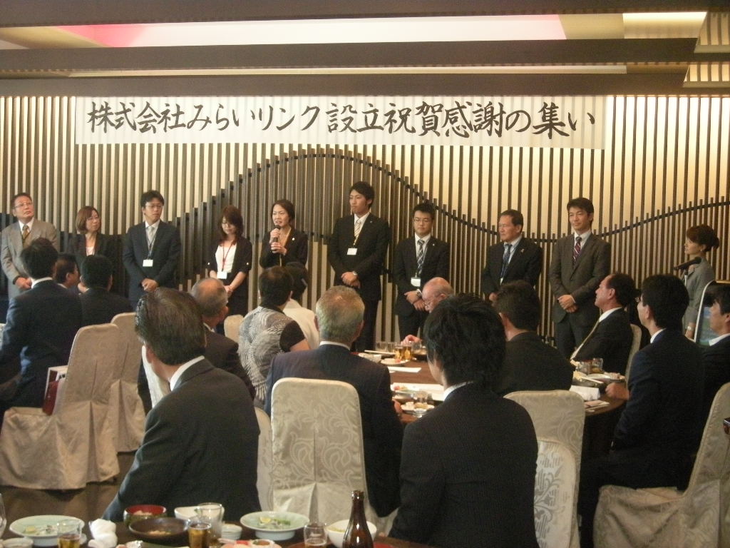 *本題の「みらいリンク」さんの設立祝賀会の様子。