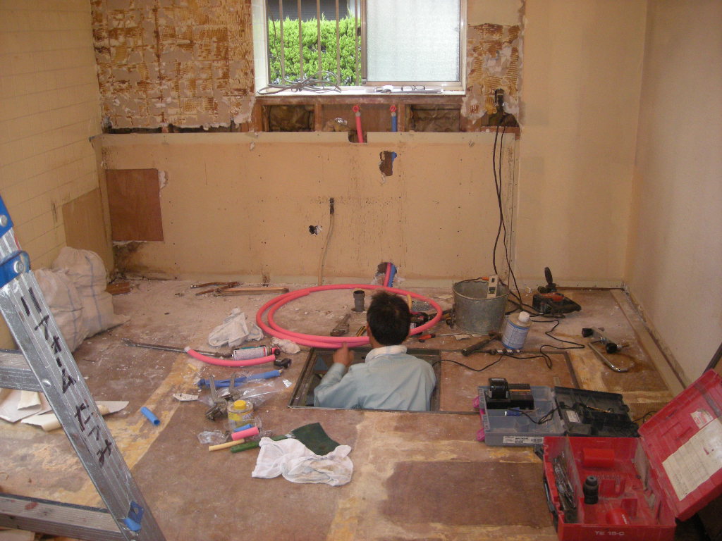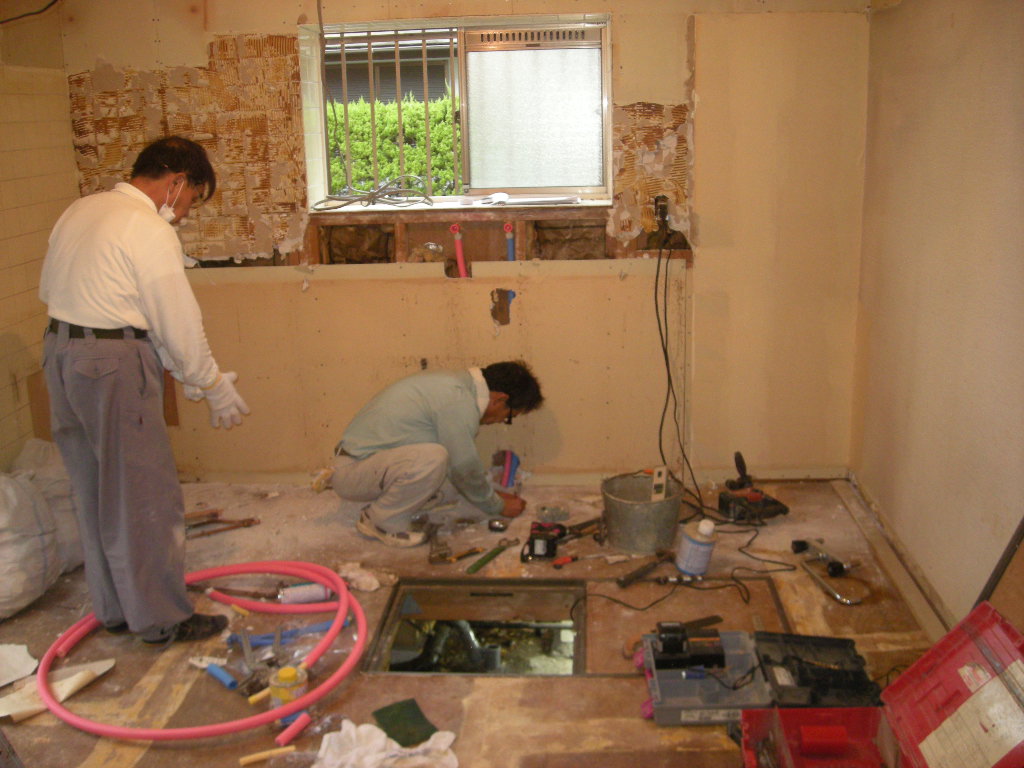 設備屋さんも、この時点で給水,給湯管の移設工事を行います!!