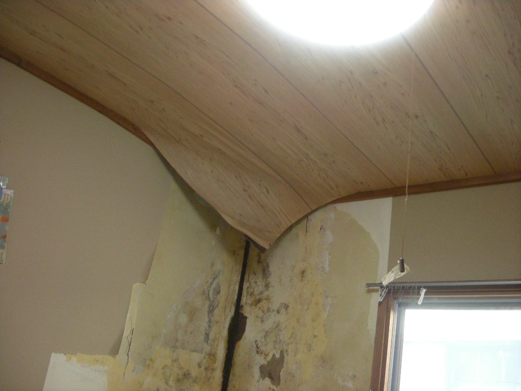 *筋川町の某邸から、数か月前から1階の和室に雨漏れがし天井と壁廻りがひどい状態に