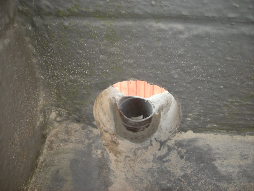 新たな管を壁の中を下に降ろさず、真っすぐ外まで出し防水モルタルをしっかり詰めました!!
