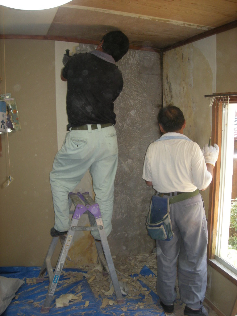 室内のモルタル壁も状態の悪い所は全部落すことにしました!!