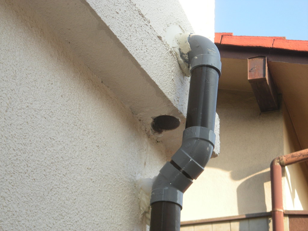 外で既存の縦樋と、ご覧の様に繋ぎました!!