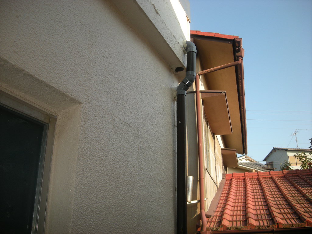 管が壁の中で繋がれることなく直接外に出ているため、壁の中に雨が漏れる