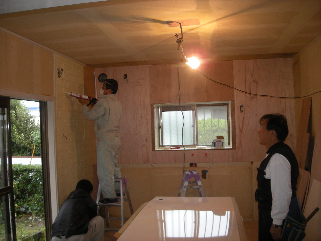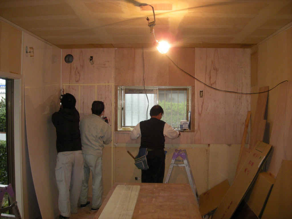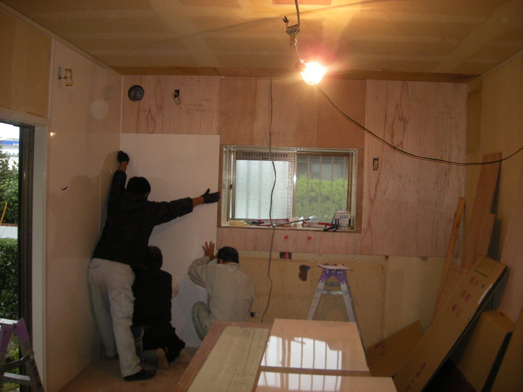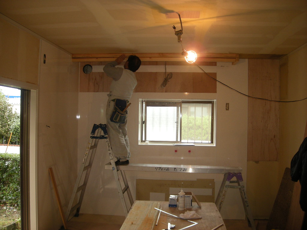 パネル張りが完了したら、次が吊戸棚を取付けるための垂れ壁を造作します!!