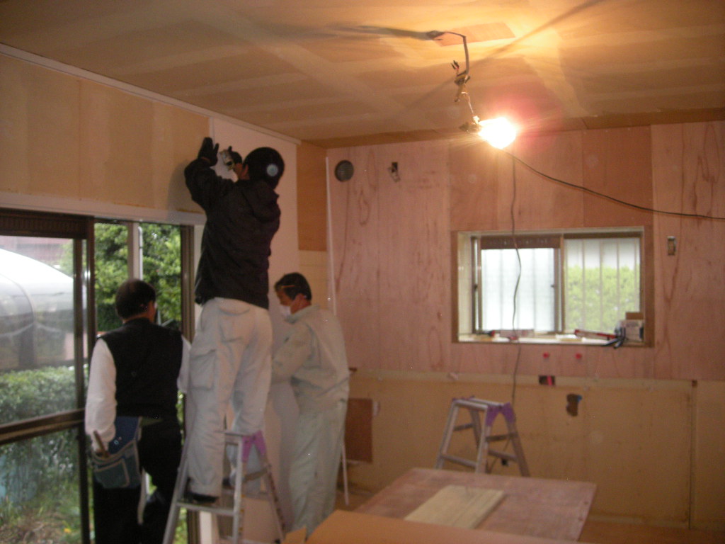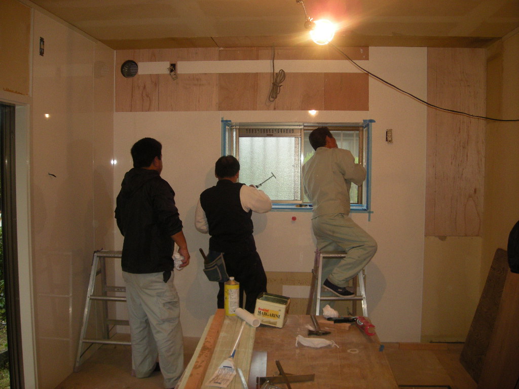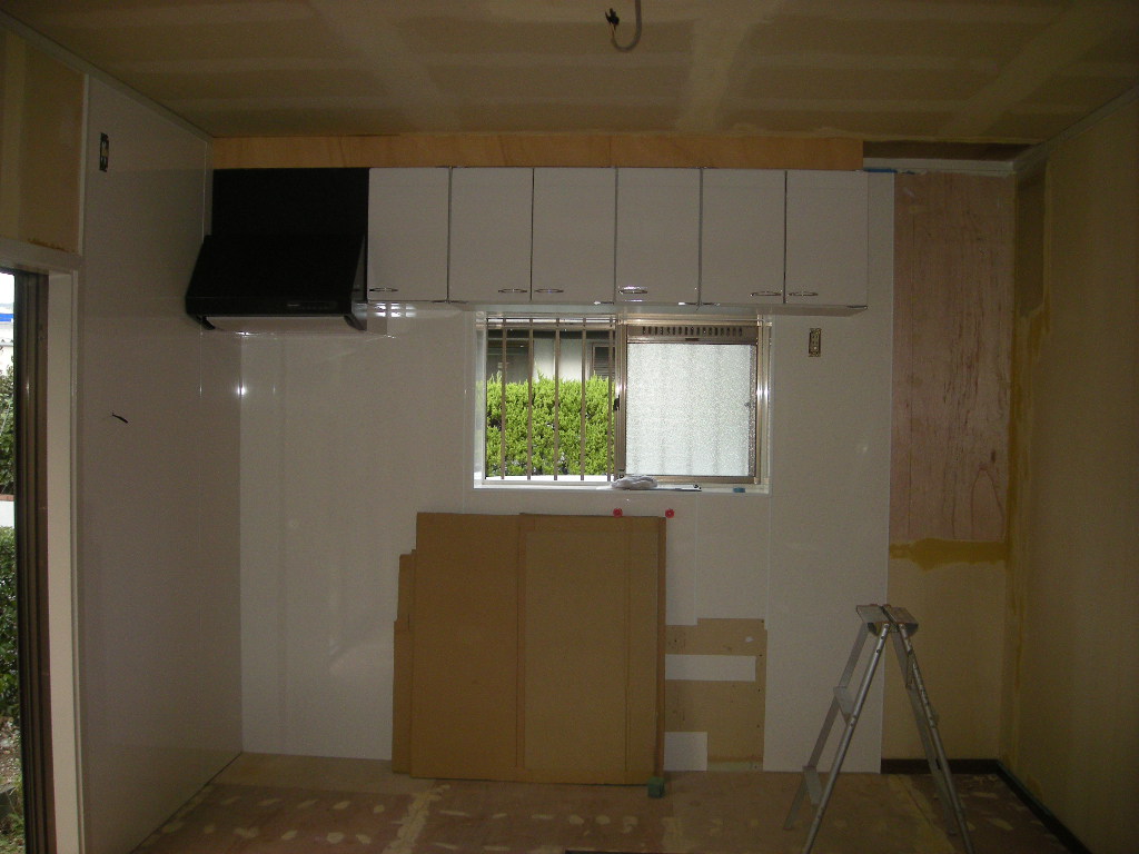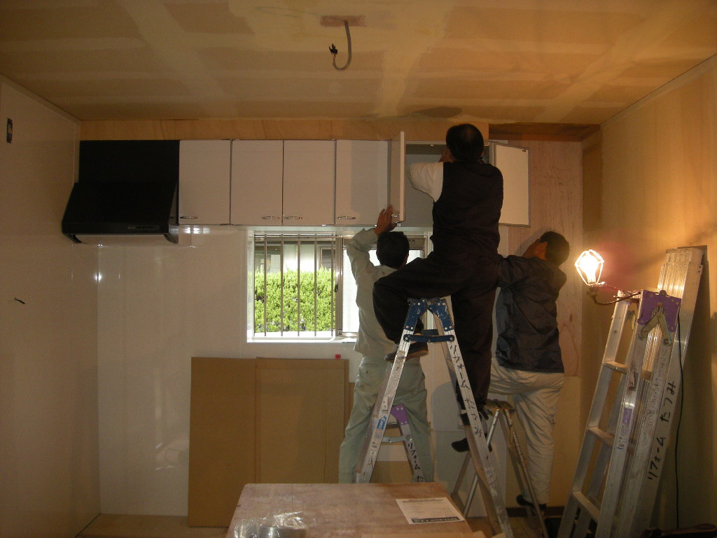 つづいて換気扇を取付け、吊戸棚を取付けて行きます!!