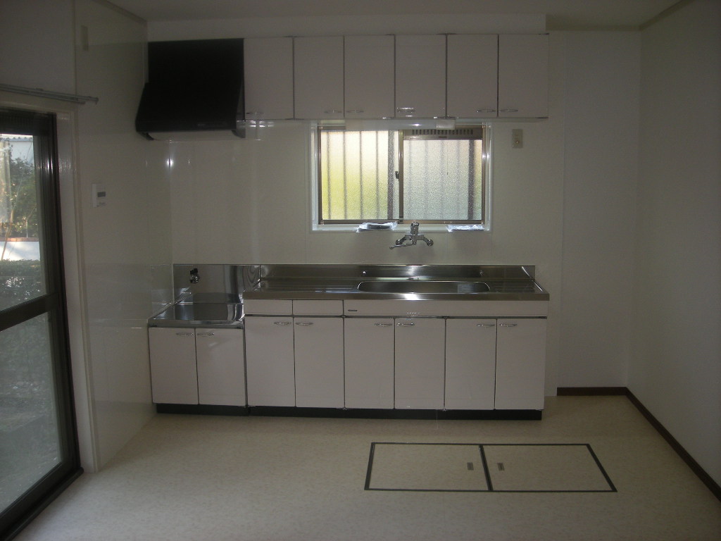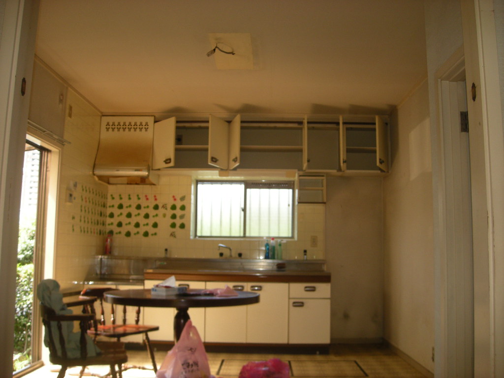天井&壁廻りクロス張替え、床CF施工、流し台(換気フード、吊戸棚含む)交換。
