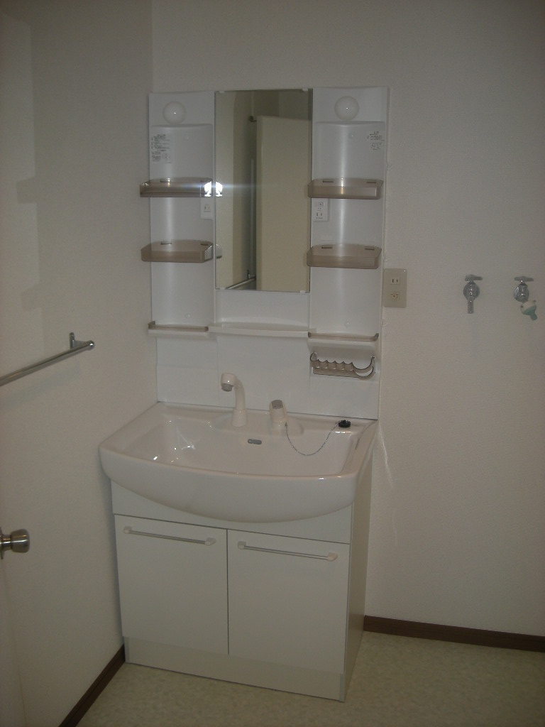洗面化粧台交換、天井&壁廻りクロス張替え、床CF張替え、他。