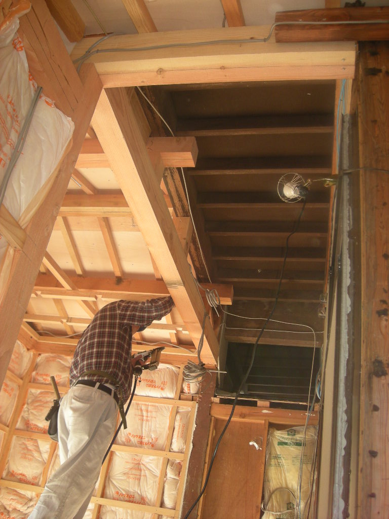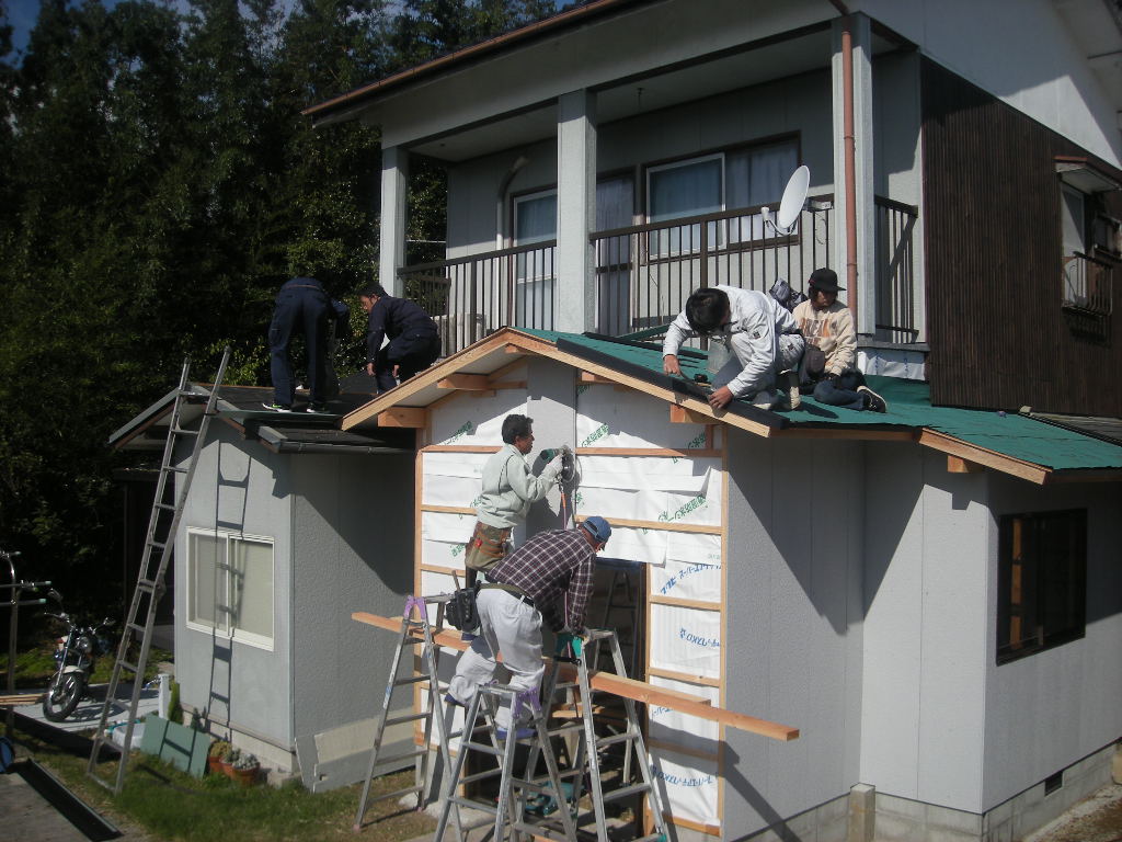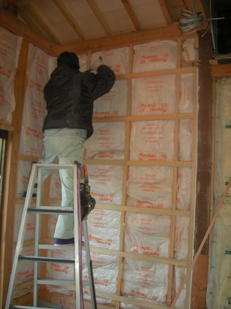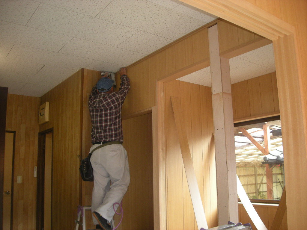 ⑪、増築した壁廻りに化粧ベニヤを張る!!