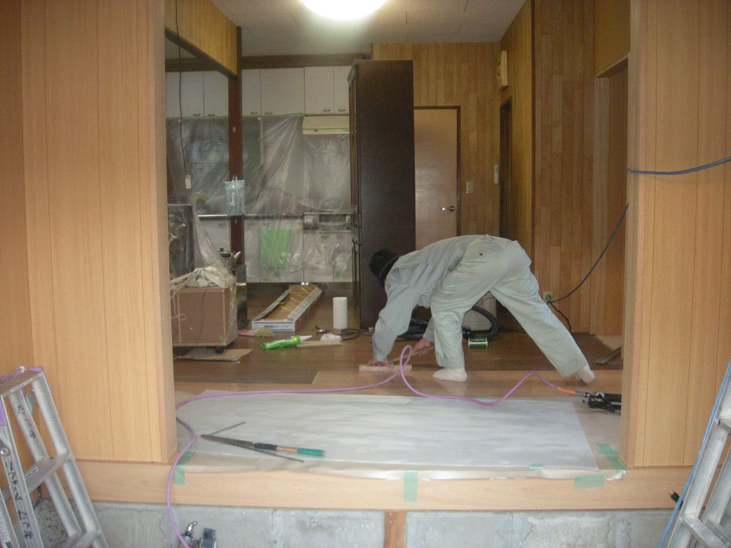 ⑩既存の室内も合わせて新規のフロア材を張る!!