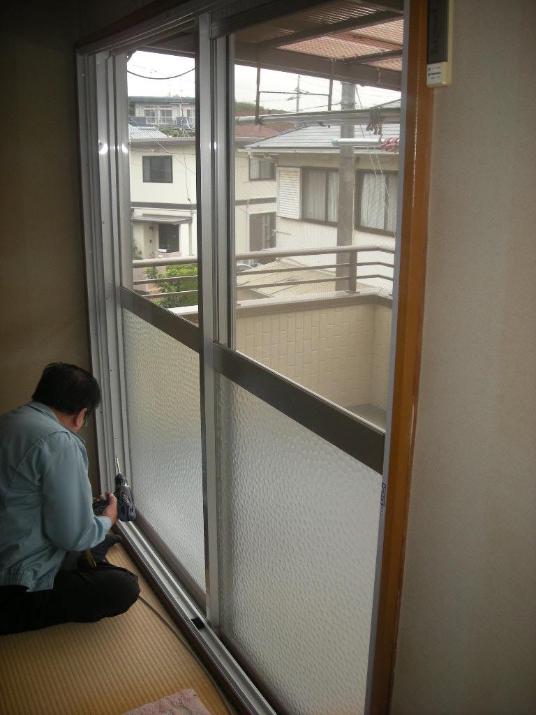 既存にサッシの内側にインプラスのサッシ枠を取付けました!!