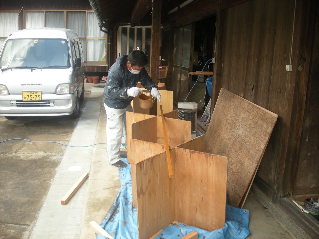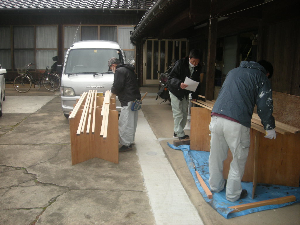 塗装した材料を現場に持ち込み場所ごとに寸法を取り加工します!!