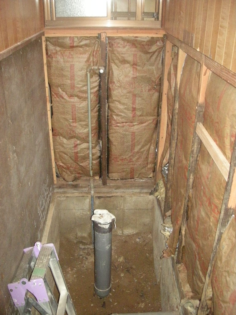 土間部分も便器等を撤去後排水管の横管が出る所まで解体し土砂も取出しました