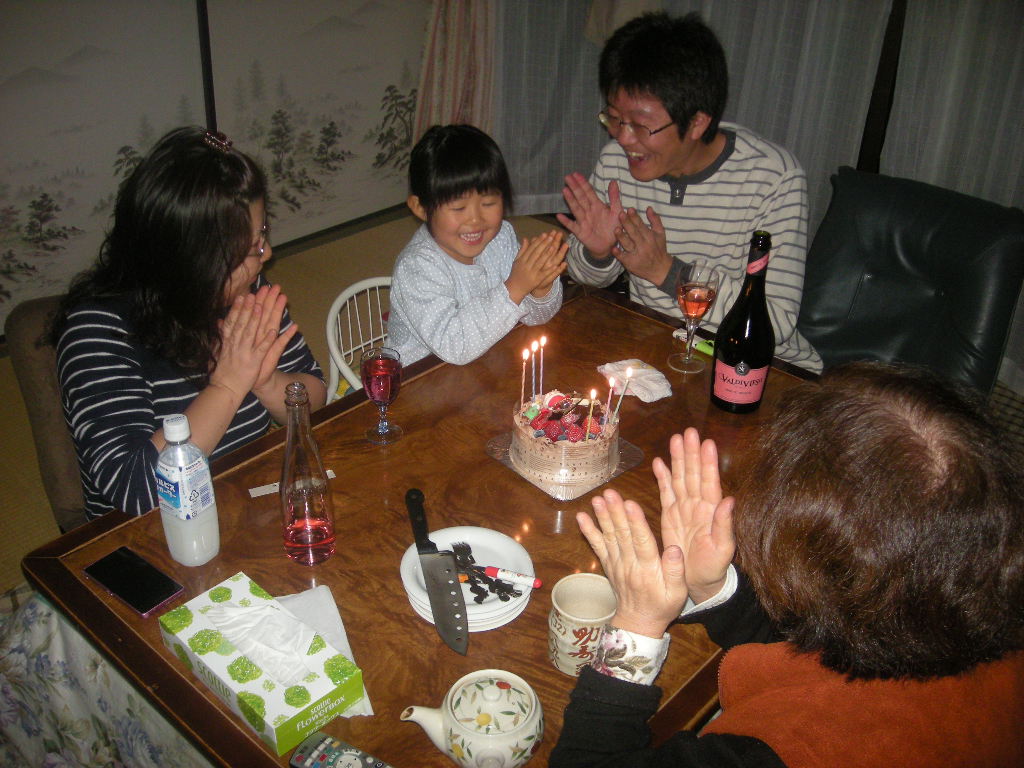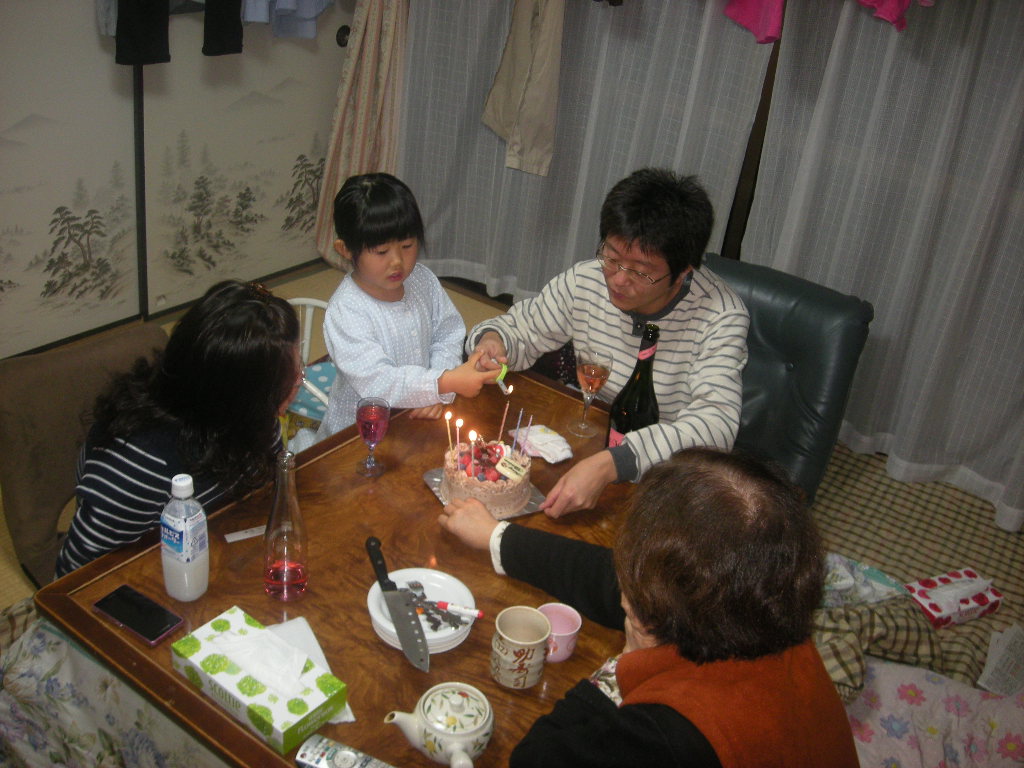 孫の明ちゃんがケーキに立てたローソクに火を付けます!!