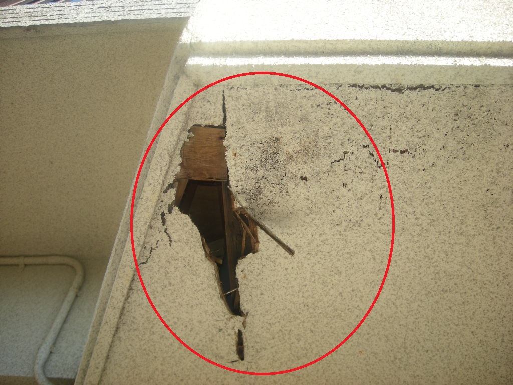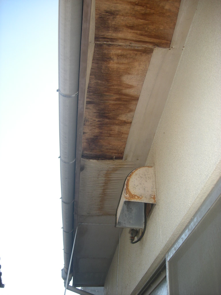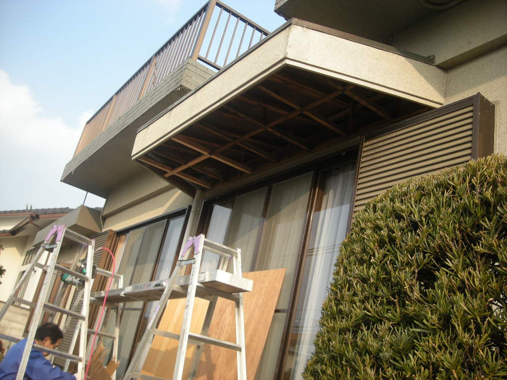 既存の軒天を解体・撤去し、下地を補強しました!!