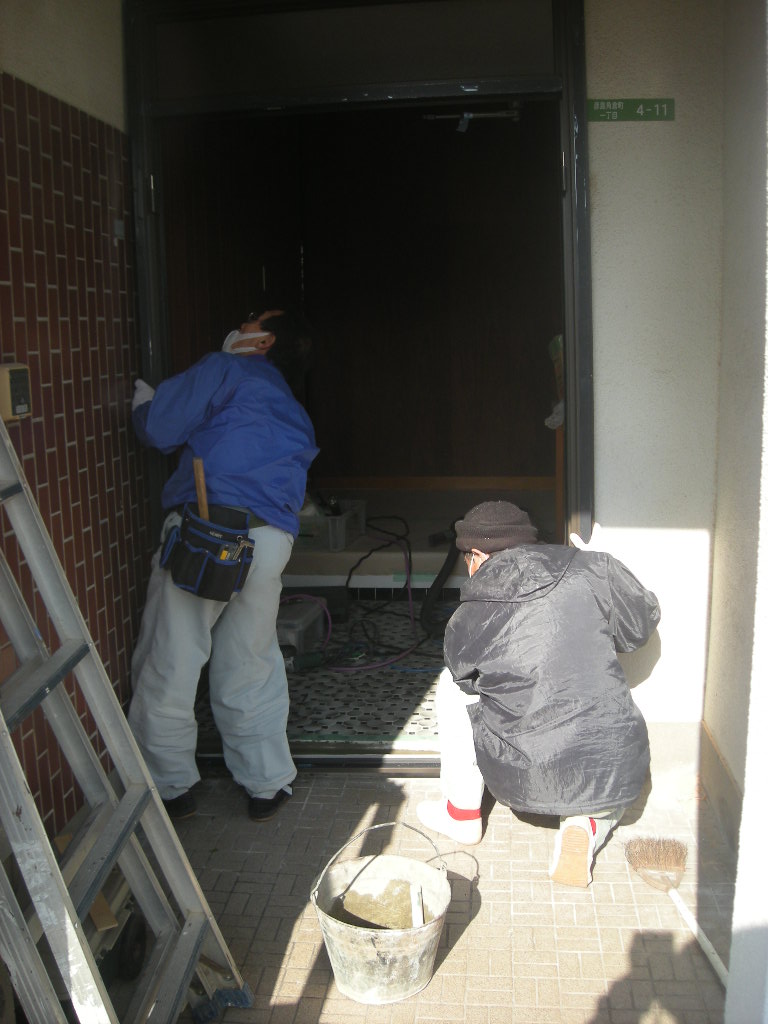 既存のドアを撤去し、新規のドアが取り付けられる様な造作をし枠を取付けます!!